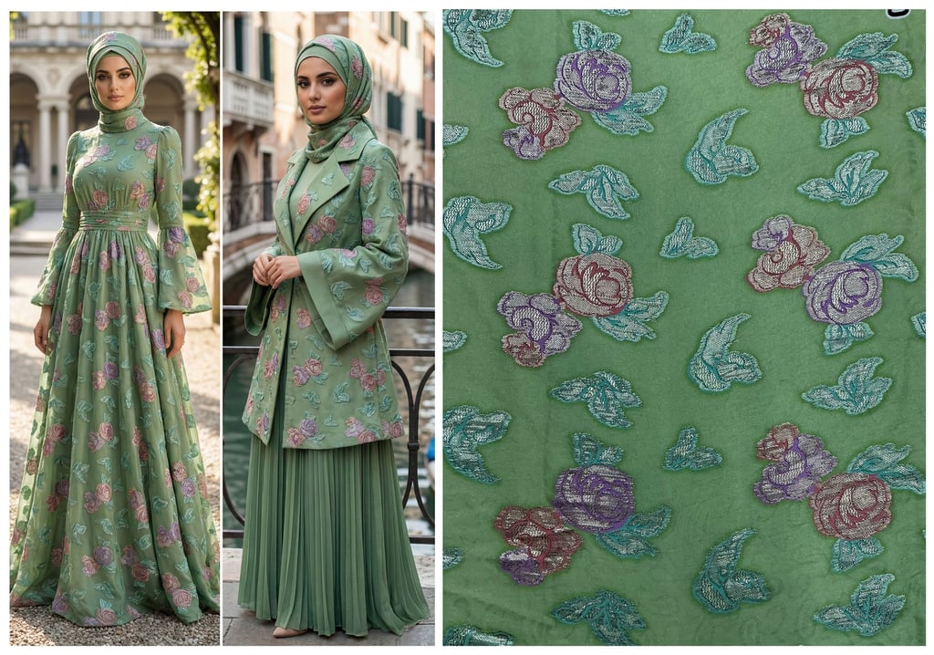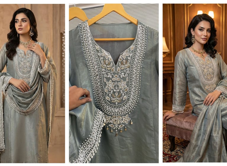 At Rang Neel, each stitch tells a story of Surat’s rich textile heritage, blending bead and lacer embroidery with viscose prints.